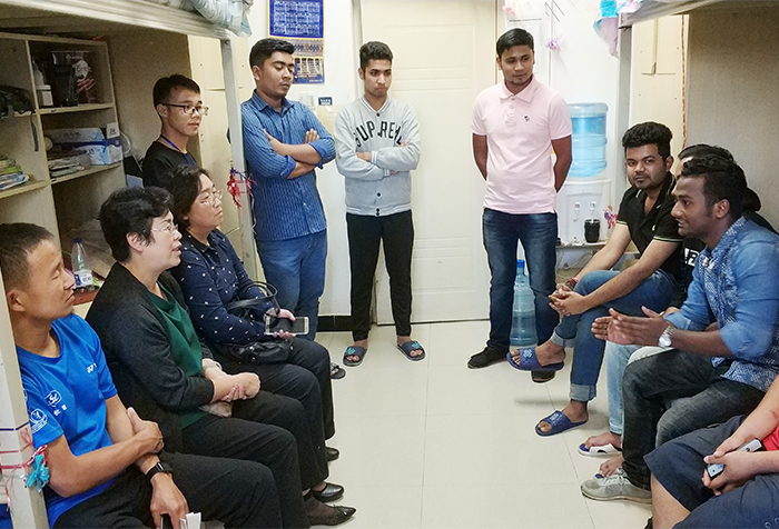 熊副校长来到润泽苑留学生宿舍,依次深入孟加拉、印度、老挝、马来西亚等国家留学生宿舍看望学生。每到一间宿舍,她都一一仔细询问留学生们的所学专业、课程设置、汉语学习、兴趣爱好、开学返校、课余安排、饮食服务等学习生活情况和需要学校帮助解决的困难及问题。留学生们听说学校领导到宿舍看望他们,都非常高兴,纷纷围坐在一起,向熊副校长畅谈自己的学习收获和所感所思,老师们热情、和蔼、亲切的态度,让留学生们也毫不拘束,纷纷敞开心扉,对老师的提问一一答复。两名孟加拉留学生还即兴给现场老师展示了本国的特色舞蹈。