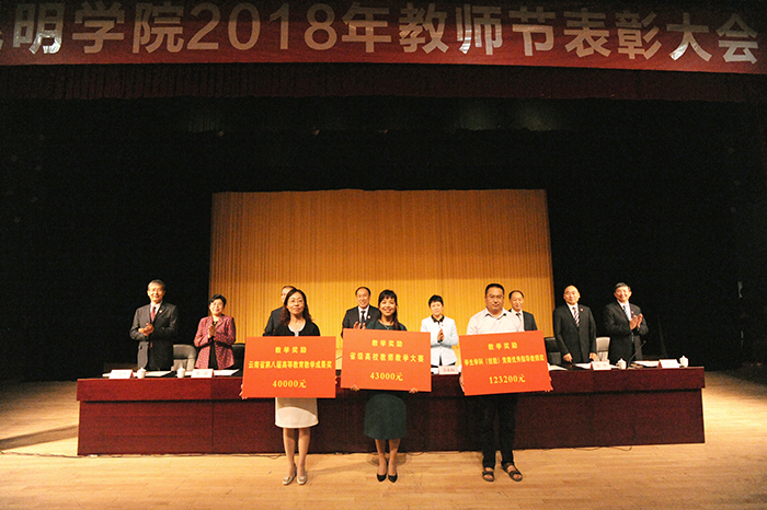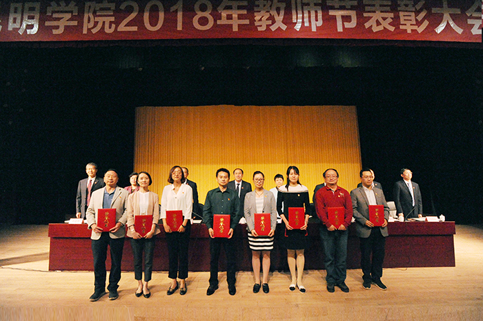 陈永明书记强调,在习近平新时代中国特色社会主义思想和党的十九大精神的指引下,学校始终坚持依靠广大教职工,紧跟高等教育改革的步伐,抢抓发展机遇,奋力推进学校又好又快发展,经过长期努力,学校迈入了全面推进“转型发展、内涵提升、重点突破”及“双一流”建设的快车道,是你们的励精图治,敢于担当,让昆院在全省同类院校中脱颖而出,取得硕士学位点和硕士授权单位,率先抢占了发展的制高点;是你们的奋勇争先,踏实精进,让昆院成为全省应用型发展的示范院校,荣膺云南省应用型高校联盟理事单位;是你们的坚韧图强,矢志不渝,让昆院续创全国文明单位成功,巩固和捍卫了昆院精神,让昆院文化薪火相传;正是学校老师们的志存高远,低调务实,让昆院坚定了扎根红土大地办全国同类高校领先、办学特色鲜明的综合性应用型大学的信念。