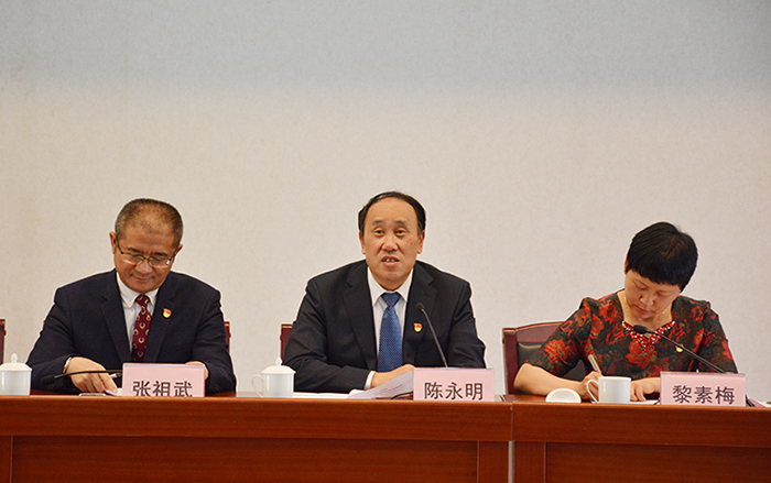 陈永明书记就加强党的建设,推动学校事业新发展,对学校各级党组织和广大党员提出要求,一要坚定理想信念,坚守共产党人精神追求及初心与使命。二是坚持全面从严治党,担负起主体责任,把抓党建作为最大的政绩。三要强化责任担当,各级党组织要充分发挥政治核心和战斗堡垒作用,每一位共产党员要时刻牢记宗旨誓言,把思想集中到干事创业上,把精力集中到做实事解难题上,把功夫下到狠抓落实上。四要切实改进作风,聚焦“四风”问题,以更大的决心进一步把八项规定精神落到实处。五要提振干事的精气神,聚精会神抓建设,一心一意谋发展,不停滞、真实干,努力做到奋发有为,大有作为。