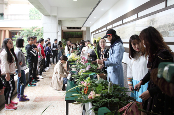 在生科系“插花文化社”代表白斌国同学现场插花表演之后,与会嘉宾参观了花文化分馆,体验了滇池流域花文化盛宴;同时参加比赛的教职工以“不忘初心”为主题进行了花艺创作,大赛评审裁判组对参赛作品进行了点评。