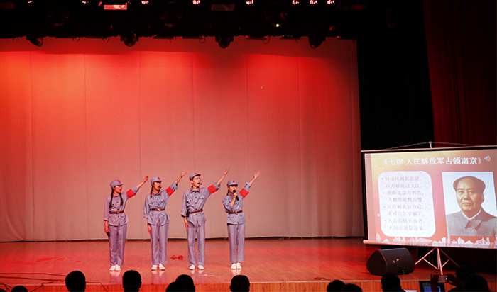 6月15日,由马克思主义学院主办,新时代高校思想政治教育改革创新研究团队承办的永利集团3044官网欢迎您大学生“读原著学原文悟原理”红色经典诵读现场展演在音乐楼实践教室举行。学校党委副书记张祖武,副校长郭华出席并指导工作,马克思主义学院院长董学荣和马克思主义学院部分教师观看展演。