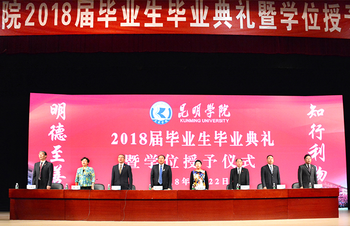 陈书记指出,同学们在校期间,学校正处于“转型发展、内涵提升、重点突破”的关键时期,是你们的勤学精进,让昆院在全省同类院校中取得硕士学位点和硕士授权单位,率先抢占了发展的制高点;是你们的砥砺笃行,让昆院成为全省应用型发展的示范院校,成为转型发展院校的盟主;是你们的坚韧图强,让昆院续创全国文明单位成功,巩固和捍卫了昆院精神,让昆院文化薪火相传;也是你们的脚踏实地,低调务实,让昆院坚定了扎根红土高原办全国同类高校领先、办学特色鲜明的综合性应用型大学的定力。我为学校能有你们这样的同学感到骄傲。