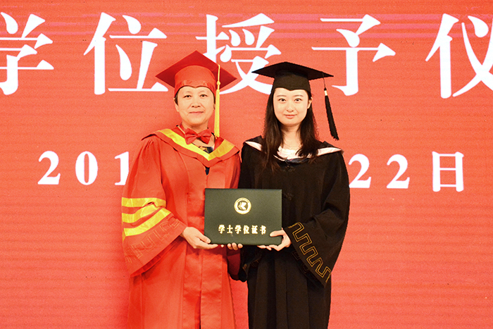 与会校领导为获奖学生代表和毕业生代表分别颁发荣誉证书和毕业证书,并为基层就业优秀毕业生佩戴绶带并赠送《习近平的七年知青岁月》一书。同时,校领导向15名外国留学生代表颁发了毕业证书,祝贺他们圆满完成学业顺利毕业。