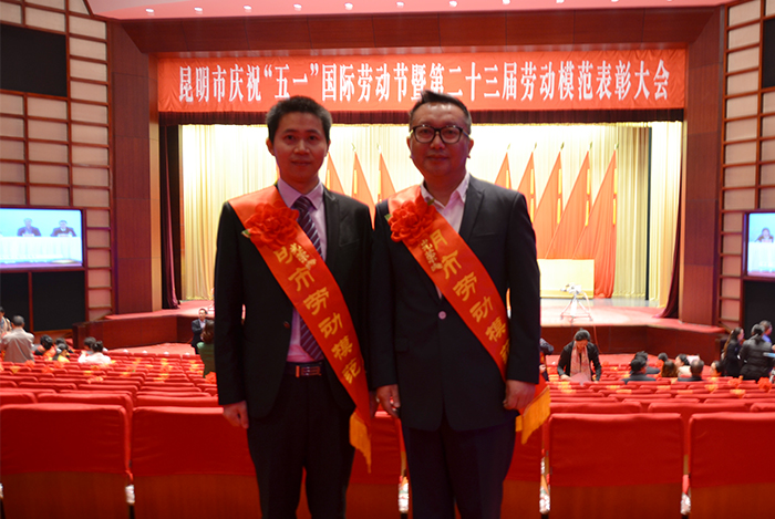 4月28日,昆明市召开庆祝“五一”国际劳动节暨第二十三届劳动模范表彰大会。永利官网荣获昆明市第二十三届劳动模范的化学科学与技术系梁德强和音乐学院鲁林在会上接受了表彰。