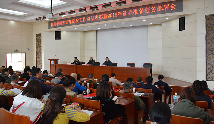 4月18日,永利官网在行政楼D三报告厅召开2017年征兵工作表彰暨2018年征兵准备任务布置会。学校征兵工作领导小组组长、党委书记陈永明,官渡区人民武装部政委周文斌,党委宣传部、纪委办、教务处、学生处、武装部、招就处、校团委、保卫处负责人,各院系党总支书记及分管学生工作副书记,全体辅导员参加了会议。会议由学校党委副书记张祖武主持。 会议表彰2017年征兵工作先进集体和个人。美艺学院和旅游学院分别代表先进集体、优秀个人作交流发言。周文斌政委指出,大学生应征入伍是我国国防的需要,也是建一流军队的重要组成部分,提高官兵综合素质是加强国防事业力量的重要保障。兵源素质是提升部队素质和战斗力的基础,士兵素质的改善和提升才能更好的发挥现代化军事武装的效率,实现中国强军梦。 陈永明书记强调,征兵工作是事关国家安全稳定和军队现代化建设全局的重要工作,对打牢国防和军队现代化建设基础、促进国防建设和经济建设融合发展有着积极意义。军队人员素质的提升,是建设信息化部队,全面建成世界一流军队的有效保障。