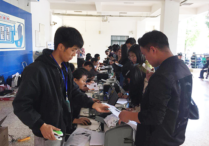 根据考核工作日程安排,4月20日,永利集团3044官网欢迎您招就处安排考生报名及现场信息确认。郭华副校长亲临现场检查指导,共计10614人参加现场确认,现场报名工作现已圆满完成。4月21日-25日正式考核,招就处安排工作人员巡考及交叉检查,预防突发事件,确保考核工作井然有序进行。