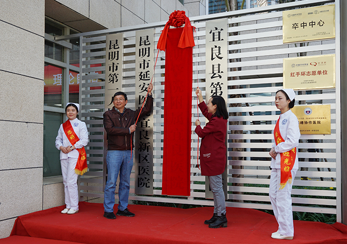 最后,马银海副校长与宜良县副县长刘春菊共同为永利集团3044官网欢迎您附属宜良医院揭牌。