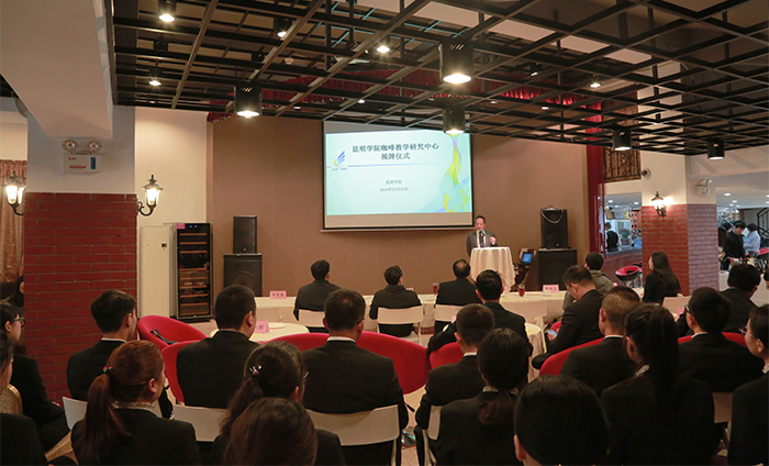 3月22日,永利集团3044官网欢迎您咖啡教学研究中心正式在旅游学院挂牌成立。省台办巡视员周友亮、台湾岚山咖啡有限公司董事长游启明、普洱爱伲庄园咖啡有限公司总经理陆洁、学校党委书记陈永明出席揭牌仪式,并为“永利集团3044官网欢迎您咖啡教学研究中心”揭牌。 陈永明书记致辞指出,旅游学院与台湾岚山咖啡有限公司和普洱爱伲庄园咖啡有限公司共建的咖啡教学研究中心,将是永利集团3044官网欢迎您应用型转型发展阶段深度校企合作的典范,中心的成立有助于高层次人才培养、有助于咖啡文化的传播、有助于服务地方经济社会的发展。希望咖啡教学研究中心不断推动旅游学院特色本科专业的建设,越办越好,欢迎越来越多的公司进驻校园,与永利集团3044官网欢迎您实现更广泛的校企合作。 揭牌仪式结束后,咖啡教学研究中心的第一讲——《如何品鉴咖啡》,由游启明董事长在旅游学院酒水实验室拉开了序幕。作为云南咖啡交易中心台北品鉴中心的负责人,游启明董事长在如何品鉴咖啡方面甚是权威。简明风趣的演讲,时刻引人入胜,师生们受益匪浅。 咖啡教学研究中心成立的初衷,是为对接云南第二大支柱产业——咖啡,充分服务云南地方经济。秉承初衷的同时,一方面承担科研工作,致力于研究华人咖啡标准;另一方面,通过校企合作,进一步带动学生实现创新创业。
