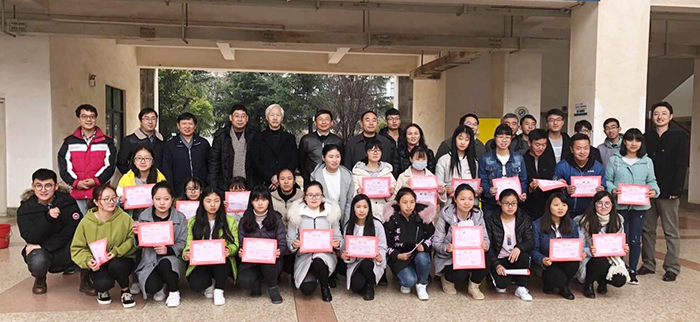 资永生老师对本届大赛的作品作点评,资老师对此次比赛参赛作品的质量给予了很高的评价,尤其是与去年相比,进步非常大。结合本届大赛作品的特点,资老师给同学们提了具有针对性的意见和建议。最后,到场的书法家们纷纷挥毫,为到现场的老师和获奖同学书写春联,这些春联受到老师和学生的欢迎,不少同学排队请书法家们赐予墨宝,活动现场气氛热烈。