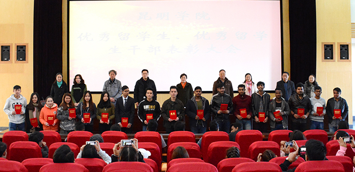 熊晶副校长向所有获奖同学表示热烈的祝贺,也对积极参加“上合组织青年交流中心”揭牌仪式志愿者服务的老挝、孟加拉、缅甸、马来西亚、越南的同学们表示衷心的感谢。熊副校长向留学生们介绍了永利官网烹饪、旅游管理、工商管理、计算机科学与技术工程、水利水电、药学、汉语言文学等深受南亚东南亚留学生喜爱的专业,介绍了2017年永利官网留学生获得云南省政府奖学金的情况。她特别强调,2018年永利官网得到昆明市政府的大力支持,设立了昆明市政府奖学金,将为更多的留学生提供奖学金和助学金,帮助大家完成学业。希望广大留学生都能向受到表彰的同学学习,不仅要学好专业知识,更要学好汉语,成为知华友华爱华、传播中华文化的使者;期望留学生们能够放眼全球,胸怀世界,主动担当起影响世界、改变世界的责任。期待着留学生中能出现更多未来的大使、工程师、设计师、公司经理,能为自己的祖国的发展贡献一份力量。最后,熊副校长祝愿每一位留学生,能享受在中国、在云南、在永利集团3044官网欢迎您的每一天,快乐生活、健康成长。