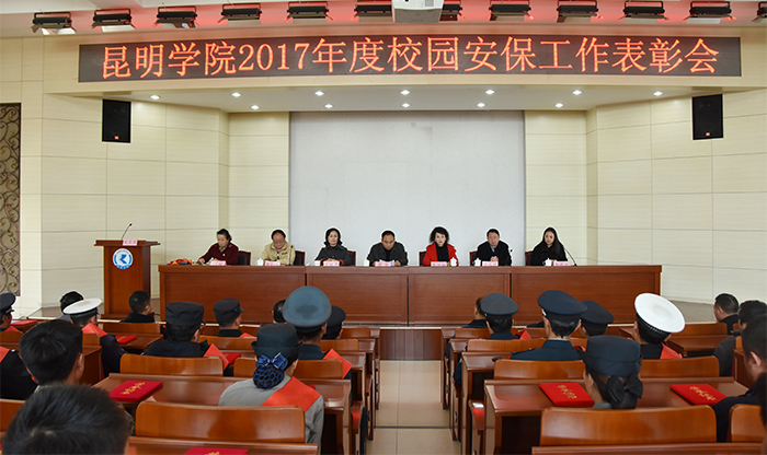 12月20日,永利官网在D区三楼报告厅召开永利集团3044官网欢迎您2017年度校园安保工作表彰会,表彰在2017年度校园安保工作中涌现出来的优秀个人。党委委员、副校长郭华,机关党总支书记蔡华仙,学生处处长晁丽华,云南绅顿保安服务有限公司副总经理和莉虹出席表彰会,保卫干部、保安、学生治安服务队员共100余人参加表彰会,表彰会由保卫处处长李劲松主持。