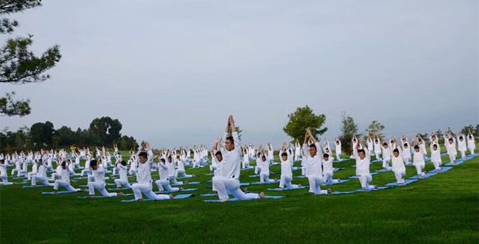 云南抚仙湖国际瑜伽文化节以“静心舒畅、瑜到澄江”为主题,普及推广国家体育总局、全国瑜伽运动推广委员会2017年最新审定的《健身瑜伽108式体位标准》,服务全民健身。 11月3日上午在抚仙湖希尔顿的湖边草地上进行300人的展示展演"水天一色、天人合一"的景象将瑜伽的内涵诠释得淋漓尽致,让广大瑜伽爱好者在仙湖畔的绿水青山中体验生命的一呼一吸,从而倡导健康文明的生活方式。下午,在禄充风景区、孤山风景区,各50人参加瑜伽展示。