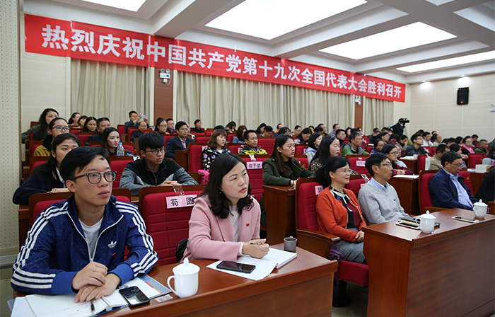 盛世中华奏凯歌,盛会鼓舞人心、报告催人奋进。10月18日上午,举世瞩目的中国共产党第十九次全国代表大会在北京人民大会堂隆重召开,习近平同志代表第十八届中央委员会向大会作了题为《决胜全面建成小康社会夺取新时代中国特色社会主义伟大胜利》的报告。习近平指出,中国共产党第十九次全国代表大会,是在全面建成小康社会决胜阶段、中国特色社会主义进入新时代的关键时期召开的一次十分重要的大会。大会的主题是:不忘初心、牢记使命,高举中国特色社会主义伟大旗帜,决胜全面建成小康社会,夺取新时代中国特色社会主义伟大胜利,为实现中华民族伟大复兴的中国梦不懈奋斗。 学校党委组织全体中层干部和师生员工代表集中收看党的十九大开幕盛况。党委书记陈永明,校长黎素梅,党委副书记张祖武,纪委书记王映平,副校长董建华、马银海、沈凡,副校级领导孙勇等党政领导班子成员与干部、师生员工们一同聆听习近平同志代表十八届中央委员会向大会作的报告。各党总支、直属党支部也结合实际,利用电视、广播、网络等多种途径,采取集中与分散的形式,组织师生收听收看。习近平总书记作的报告引起师生强烈反响。 大家一致认为,习近平同志向大会所作的报告,高举中国特色社会主义伟大旗帜,全面总结了过去五年的伟大成就和历史性变革,系统阐述了构成新时代坚持和发展中国特色社会主义的基本方略,进一步明确了未来一个时期党和国家事业发展的大政方针和行动纲领,科学谋划了到本世纪中叶的战略性发展目标和宏伟蓝图,为实现中华民族伟大复兴指引了前进的方向。报告旗帜、主题鲜明,内涵丰富,高屋建瓴,思想深刻,鼓舞人心,催人奋进。 陈永明书记指出,党的十九大胜利召开是一次具有重大历史意义的会议。大会标志着中华民族伟大复兴的中国梦将开启一个新的具有重大历史意义的新篇章。大会也向世界展示了以习近平同志为核心的党中央高举中国特色社会主义伟大旗帜,全党全国各族人民向着中华民族伟大目标奋勇前进,勇往直前。大会让我们深深地感受到我们国家发生的具有重大意义的历史性变化,也让我们深深地感受到国家取得的伟大成就。这些成就的取得令我们深受鼓舞,也倍感自豪。 陈永明书记强调,永利集团3044官网欢迎您作为一所高等院校肩负着为中国特色社会主义培养合格建设者和接班人的重任。学习好贯彻好党的十九大精神,用党的十九大提出的新理论新思想新要求武装广大干部、师生,这将是当前最重要的政治任务。我们作为高校要始终回答好怎么样培养人,培养什么样的人这一重大历史问题。要坚持中国特色社会主义办学方向,坚持立德树人这一根本任务。我们将在党的十九大精神的指引下深化学校教育体制机制改革,推动学校教育、科研和人才培养工作。 “过去五年,党的事业、国家的事业取得的进步和发展,每一个共产党员、每一个中国人都真切感受到巨大的变化,我为国家的日益富强倍感自豪,这一切和党的坚强领导密不可分。”人文学院党总支书记陈嘉教授表示,作为一名高校的党员教师,要牢记习近平总书记的重要讲话精神,牢记使命,把教书育人和为人民服务的宗旨贯穿到具体的工作之中,认真学习、努力工作,不辜负师生的期待和信任,在新的时代争做一名优秀的共产党员。 马克思主义学院形势与政策教研室主任苟园副教授说,看到在过去五年以习近平同志为核心的党中央带领全国人民迎难而上、革故鼎新、砥砺奋进取得的辉煌成就,由衷感到自豪和骄傲。作为一名高校思想政治理论课教师,我将认真学习党的十九大报告,牢记高校教师的使命与责任,围绕立德树人的中心工作,坚持不懈传播马克思主义理论,为学生的一生成长奠定科学的思想基础,为社会主义现代化建设培养合格建设者和可靠接班人;以开拓进取的精神为实现中华民族的伟大复兴贡献自己的力量。 “作为一名高校的普通党员教师,我认为理想信念是共产党人安身立命之本和政治灵魂,所以我们要把立德树人作为使命,把为共产主义教育事业奋斗终身作为自己的职责,为党的教育事业鞠躬尽瘁。”国际交流合作处留学生管理科科长陆向红老师表示,在党的十九大精神指导下,发挥昆明地处辐射南亚、东南亚的地缘优势和学校办学特色的吸引力,进一步做好南亚、东南亚留学生工作,搭建交流桥梁,传播博大精深的中国文化,培养留学生知华、爱华、亲华的情感,为“一带一路”沿线国家的经济文化发展添砖加瓦。 “过去五年我国取得的巨大成就,我作为一名中国人而自豪。”人文学院2015级历史学专业学生邓博文表示,我作为历史学师范类专业的学生,今后在自己的专业领域上不断努力学习钻研,将来在教师岗位上秉承立德树人、以身为范精神,把自己的知识传授给学生,让他们懂得老一辈革命家的艰辛奋斗历程,懂得新中国成立的来之不易以及我国的光辉历史,为实现中华民族伟大复兴的中国梦而不懈奋斗。我会继续严格按照党章的要求履行一名共产党员的职责,不忘初心、牢记使命,继续前进。 “地铁、高铁如期开通,让我切身感受到出行的方便和‘中国速度’。”自动控制与工程管理学院2016级交通运输专业学生赵茜茜自豪地说,昆明创建文明城市,基础设施得到进一步的完善,人民素质不断提高,城市凝聚力和竞争