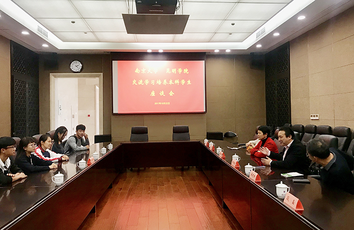 10月22日,永利官网校长黎素梅到南京大学仙林校区看望永利官网选派到南大交流学习的5名同学并召开座谈会。同学们先后汇报了近期在南京生活和学习的情况。看到同学们都很适应新的学习生活环境,黎素梅校长表示很欣慰,并鼓励各位同学要提高思想认识,尽快融入南大学习环境,感受南大良好学风,养成主动学习的习惯,争取把好的学风带回昆明,并祝福各位同学身体和学习共同进步。