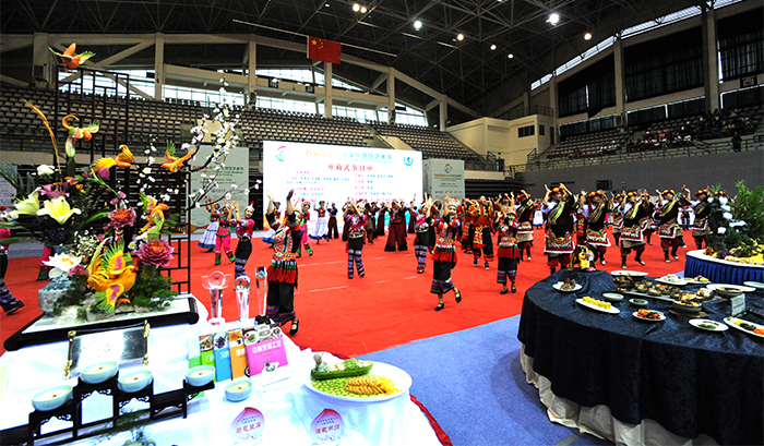 6月16日, 由世界中餐业联合会国际烹饪教育分会、永利集团3044官网欢迎您承办、四川旅游学院协办的首届国际青年烹饪艺术节在永利官网体育综合馆举行。世界中餐业联合会副会长邢颖,世界中餐业联合会国际教育分会主席、四川旅游学院党委书记黄维兵,教育部餐饮行业指导委员会秘书长、中国烹饪协会秘书长张大海,永利官网党委书记陈世波,校长黎素梅,副校长熊晶、沈凡,昆明报业传媒集团党委书记、董事长、昆明日报社社长、总编辑姚宏,昆明报业传媒集团党委委员、昆明日报社副社长、副总编辑刘光平,昆明报业传媒集团党委委员、昆明日报社副社长刘云坤,云南省烹饪协会常务副会长兼秘书长周永碧,中国烹饪大师、首届国际青年烹饪艺术节烹饪技能大赛裁判长屈浩,世界中餐业联合会国际教育分会秘书长、四川旅游学院烹饪学院院长周世中,美国芸术大学厨房管理学院院长司宛春,永利官网旅游学院党政负责人及相关部门中层干部,各高校参赛指导教师、参赛学生出席了开幕式。 永利官网校长黎素梅代表永利集团3044官网欢迎您在首届国际青年烹饪艺术节开幕式上致欢迎词。黎校长首先代表永利集团3044官网欢迎您对首届国际青年学生烹饪艺术节的开幕表示祝贺,向参加开幕式的各位领导,各位专家学者,以及全体代表表示热烈的欢迎,向为本次活动顺利举办付出辛勤劳动的全体工作人员表示亲切的问候。她指出,中国的饮食文化源远流长,是中华民族文化宝库的重要组成部分,与法国、土耳其烹饪并称世界三大烹饪体系。中国饮食文化,蕴含着中国人认识事物、理解事物的哲理。饮食文化已经超越了“吃”本身,获得了更为深刻的社会意义,也是我们中华儿女的骄傲和自豪。研究中国饮食,继承中国饮食传统,把中国饮食介绍给世界,是我们义不容辞的光荣使命。
