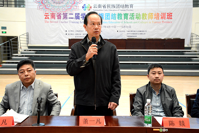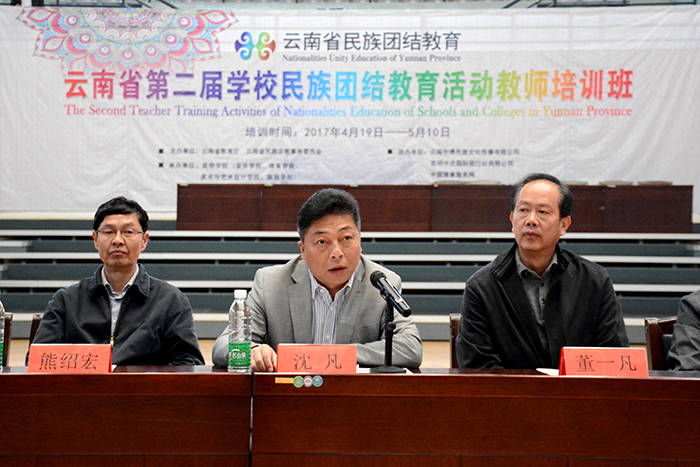 4月20日,云南省第二届学校民族团结教育活动教师培训在永利官网综合体育馆举行开班仪式。云南省教育厅民族教育处处长董一凡,云南省民族宗教委员会教科处主任科员陈燚,永利官网副校长沈凡以及美术与艺术设计学院、旅游学院、体育学院等部门党政负责人,参训的300多名学员参加了开班仪式。