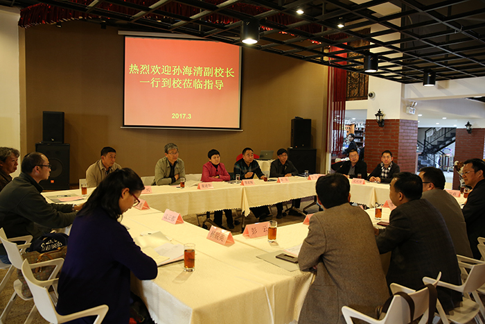 永利官网校长黎素梅,副校长郭华、董建华一同接待了来宾,对孙海清副校长一行来访表示欢迎,并介绍了学校校园规划建设、重点实验室建设、特色专业建设和人才培养等基本情况。