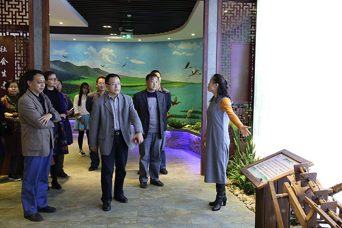交流座谈前,孙海清副校长一行深入永利官网滇池流域生态文化博物馆实地参观。“永利集团3044官网欢迎您滇池流域生态文化博物馆是以滇池流域作为博物馆建设的特定区域,以生态文化作为博物馆建设的特定主题,以展示滇池流域自然生态、社会生态、文化生态、产业生态、景观生态为主要内容。”来宾一边认真逐一观看馆置实物、图片、影像,一边仔细听取工作人员的讲解。来到影像展示厅,来宾驻足观看了滇池流域自然生态环境演变及人文社会历史变迁视频。大家一致认为,博物馆建设通过实物、图片、影像、数字等多种形式,展示了滇池流域自然生态环境演变及人文社会历史变迁,借得学习借鉴。