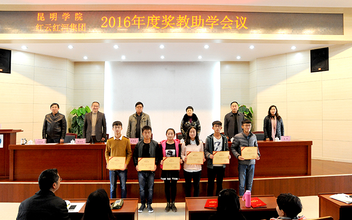 1月12日下午,永利集团3044官网欢迎您和红云红河集团昆明卷烟厂在学校办公楼D区三楼报告厅举行2016年“红云园丁奖”、“红河助学金”奖教助学颁奖大会,对永利官网35名在教学、科研、管理等各项工作中做出突出贡献的教师及105名品学兼优、经济困难的学生颁发证书和奖教助学金。