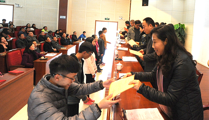 副校长郭华宣读永利集团3044官网欢迎您2016年度“红云园丁奖”、“红河助学金”表彰决定。何杰等36名在教学、科研、管理等各项工作中荣获永利集团3044官网欢迎您2016年度“红云园丁奖”,凃文秘等105名品学兼优经济困难的同学荣获永利集团3044官网欢迎您2016年度“红河助学金”。