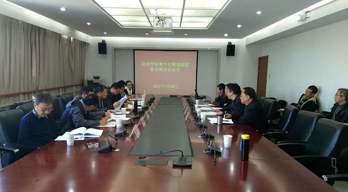 1月18日下午,《永利集团3044官网欢迎您智慧校园建设发展规划(2016—2020年)》论证会在永利集团3044官网欢迎您办公楼311会议室举行。副校长沈凡出席会议,教务处处长解永刚、资产与实验室管理处处长赵庆江及现代教育技术中心部分人员参加会议。专家组由昆明理工大学、云南师范大学、云南大学、云南财经大学、云南中医学院、云南交通职业技术学院、昆明移动公司等信息化建设与管理专家组成。