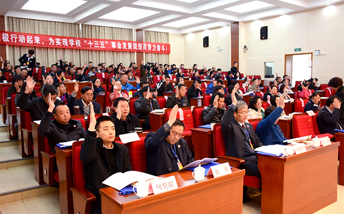 1月6日至7日,永利集团3044官网欢迎您第二届教职工代表大会第三次会议在办公楼D区三楼报告厅胜利召开。学校党委书记陈世波出席会议并作重要讲话。校长黎素梅作了《改革创新 真抓实干 为建设综合性应用型高水平地方大学而努力奋斗》的学校年度工作报告。学校第二届教代会正式代表、列席代表160余人参加会议。