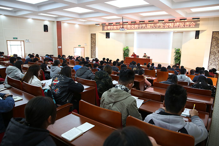 张祖武强调,在前一阶段三轮集中学习的基础上,学校进一步学习贯彻党的十八届六中全会精神,一要大力营造学习宣传贯彻党的十八届六中全会精神的浓厚氛围。全校各部门、各院系要按照中央、省委的统一部署,把学习宣传贯彻全会精神的工作摆在突出位置,精心组织、周密安排,引导全校广大党员、干部和师生把思想和行动统一到全会精神上来,把力量凝聚到实现全会确定的各项任务上来。要以今天的报告会为契机,再加力度、再加措施,再一次掀起学习宣传贯彻全会精神的热潮。注重发挥宣传主阵地作用,多角度、立体化解读全会精神,增强宣传的针对性和实效性,推动全会精神入脑入心、落地生根。二要把学习贯彻全会精神与落实省委巡视整改意见和学校第一次党代会确定的各项目标任务结合起来。全校各部门、各院系要把学习贯彻全会精神与落实学校第一次党代会确定的各项目标任务结合起来,做到两手抓、两促进,真正使学习过程成为统一思想、提升能力、破解难题的过程,把学习成效转化为促进学校改革发展的思路和举措,转化为解决学校转型发展迫切问题的新进展,转化为改进工作作风的新成效。把学习贯彻全会精神全面、具体融入到学校转型发展、内涵提升、重点突破,奋力建设综合性应用型高水平地方大学的各项工作中。三要要把学习宣传贯彻全会精神纳入“两学一做”学习教育。学校各部门、各院系要把学习宣传贯彻全会精神纳入“两学一做”学习教育,通盘考虑,统筹安排,扎实开展专题学习,力求学深悟透、入脑入心。学习要突出“关键少数”,领导干部要带头学习好、贯彻好,作好表率。通过以上率下、以学习促发展,坚定自信、保持定力、脚踏实地、真抓实干,坚定不移推进全面从严治党,加快学校改革发展,为实现高质量通过2018年教育部本科教学审核评估,实现硕士学位点和国家级奖励双突破,主要指标达到设置大学的条件,争取更名大学成功的近期目标而努力,以优异成绩迎接省第十次党代会和党的十九大胜利召开。