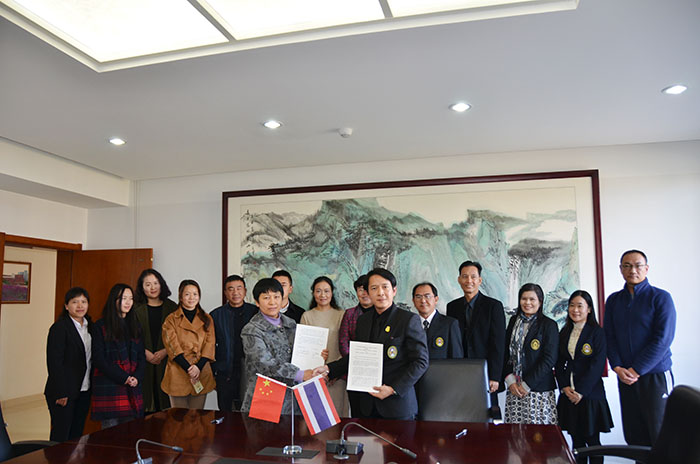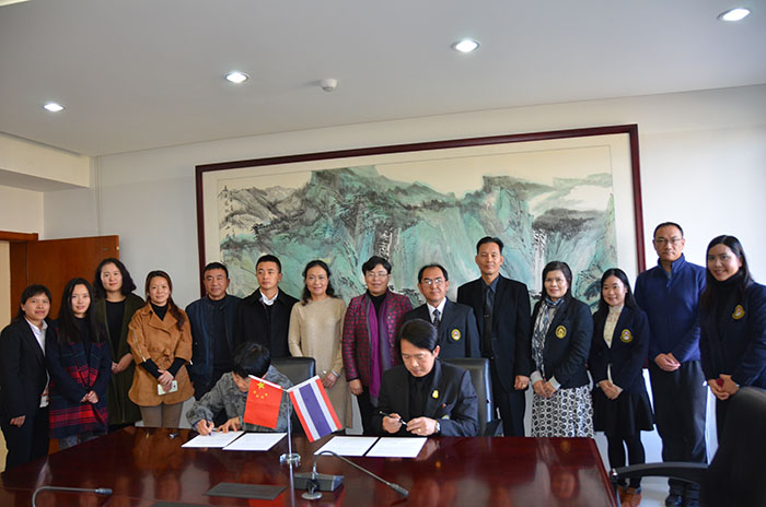 12月9日,泰国北碧府皇家大学Narongdech Rattananonsathien校长率代表团一行6人访问永利官网,学校校长黎素梅、副校长熊晶、国际交流合作处和外国语学院领导及相关教师热情接待并与之会谈,会谈结束后,双方校长共同签署了学生短期交流学习项目协议。