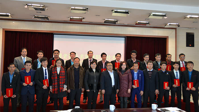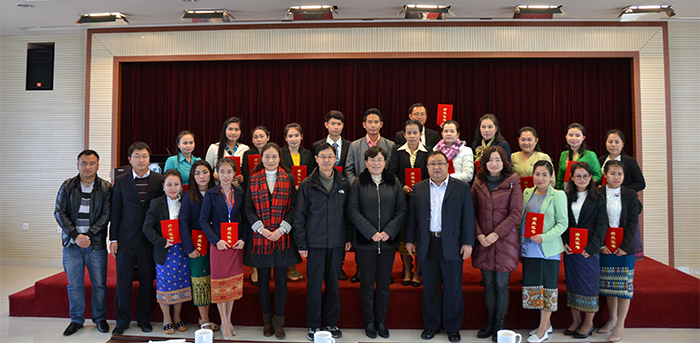 12月15日,永利官网举行援老挝乌多姆赛职业技术学校酒店管理和汽车修理技术合作项目结业仪式。副校长熊晶出席并讲话,旅游学院党总支书记熊绍宏、院长田芙蓉、副院长杨韫和教务处处长解永刚,云南建工集团国际工程部总工程师杨俊、项目管理中心副主任杨帆和赵明,以及38名老挝学员和部分老挝语翻译人员参加。