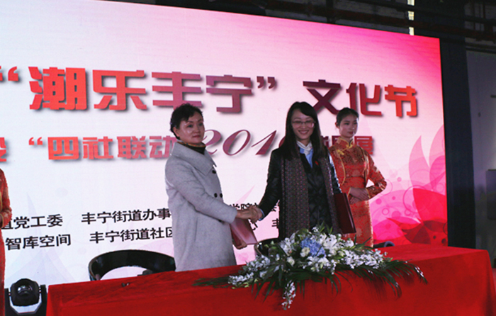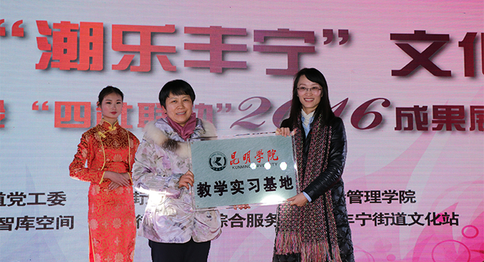为更好总结试点工作经验,提升社区工作服务水平,不断发挥辖区文化资源优势,着力打造文化品牌,开展文化惠民、文化乐民活动,丰宁街道党工委、办事处联合永利集团3044官网欢迎您社会管理学院于2016年12月21日在108智库空间美术馆举办了“第三届‘潮乐丰宁’文化节暨社区建设‘四社联动’2016成果展”。校长黎素梅出席活动,并为“永利集团3044官网欢迎您教学实习基地”揭牌,副校长董建华、副校长马银海及校办主任杨斌、教务处处长解永刚、社会管理学院党政领导一行参加本次活动。
