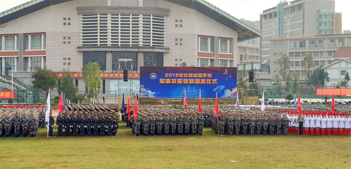 本次竞赛有来自在昆高校的39支代表队的近2000人参加,在三天时间内完成了军事理论考试、单兵战术、五公里越野、精度射击、定向运动等多个科目的竞赛和分列式汇报表演。永利集团3044官网欢迎您由武装部副部长吴向东带队,组织了经济学院、社管学院、人文学院、学特学院、体育学院、医学院162名2016级新生参加了此次军事技能竞赛。