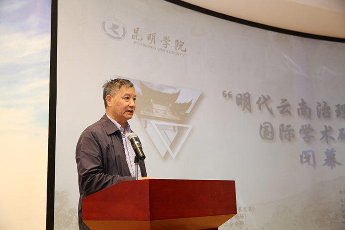 闭幕式上,毛佩琦教授作会议总结讲话。他指出,本次研讨会层次高、亮点多、现实价值大。体现在研究题目多层化,就主题来看,有从中央到民间社会,可谓多层次,又有研究有人物、制度、思想文化等方面,这是历次学术会议所没有的;研究队伍的广泛化,有民间文物馆、中国社科院、各高校及其他史学爱好者,特别是地方学者的参与使得研究成果和理念更为先进;以云南为主题,地域广泛化,把目光投入到了云南以外的地区,和云南进行对比性研究,取得不错成果,可以说本次研究既看到了视野,也提出了期待;研究方法多样化,把传统史学研究方法和民族学、人类学、社会学等的研究方法结合起来,研究题目也有多样化,如本次会议还涉及到香料史的研究;带有国际化倾向,无论是从“明代云南的治理与开发”国际学术会议这个主题来看,还是从论文角度来看都有所凸显,如参会人员既有中国学者,还有美国学者鲁大维等,论文上也有从明代安南与云南关系入手的;不仅关注历史,也关注现实,使国家的“一带一路”政策得以在史学研究中体现。