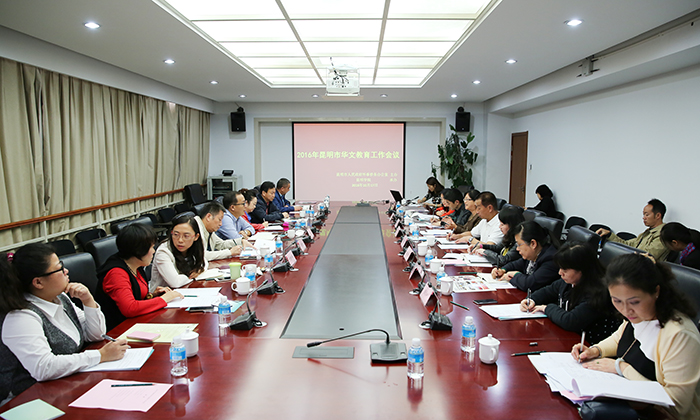 昆明市外侨办高度重视华文教育工作的开展,为了加强对昆明市华文教育基地的管理和指导,每年均举行年度华文教育工作会议,本次会议旨在整合各华文教育基地的教学和优势资源,形成合力,共同推进华文教育工作。昆明市现有七所华文教育基地学校,分别是永利集团3044官网欢迎您、昆明第一中学、昆明第八中学、昆明市艺术学校、昆明市外国语学校、明通小学和侨光小学。各所学校领导和代表结合各校办学情况汇报了本年度在外派教师、承办华文教师培训、参加艺术交流活动、改编教材和联合办学等方面开展工作的基本情况,就工作中遇到的外派教师条件要求较高、开展国际交流工作队相关政策缺乏了解的问题向出席会议的相关部门领导进行了咨询,并均表态希望以更饱满的热情继续参与和支持昆明市的华文教育工作。