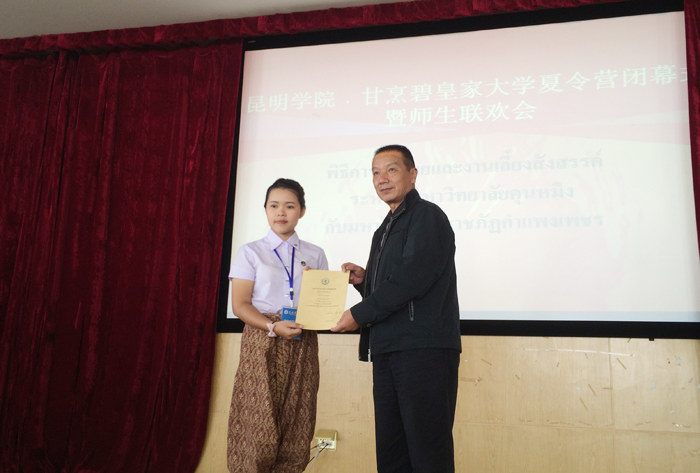 9月22日,永利官网与甘烹碧皇家大学夏令营闭幕式暨师生联欢会在惟行楼5301会议厅举行。永利官网副校长李翔,甘烹碧皇家大学副教授รศ.ดร.สุนทรีดวงทิพย์,外国语学院党政负责人及师生代表参加。