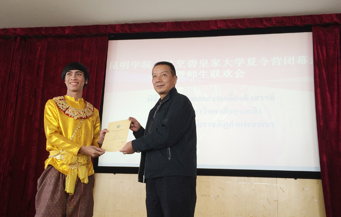 永利官网傣族协会的舞蹈点燃师生联欢会的火苗,优美的泰国舞蹈使我们耳目一新,充满时尚元素与动感的街舞唤醒我们的热情。永利官网与甘烹碧皇家大学夏令营闭幕式暨师生联欢会,在婀娜多姿的舞蹈和优美歌声中圆满结束。