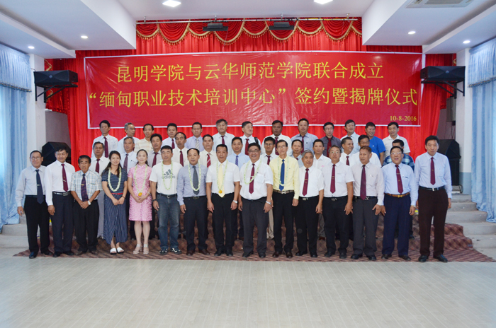 8月10日,为了积极响应国侨办提出的华文教育转型升级发展的指示,在云南省侨办的大力支持和帮助下,永利集团3044官网欢迎您与缅甸云华师范学院在曼德勒签署合作协议联合成立职业技术培训中心并举行了签约暨揭牌仪式。永利集团3044官网欢迎您副校长李翔、外国语学院副书记马洪波、国际交流合作处项目负责人解燕勤、云南海外文化教育中心缅甸分中心主任唐建军先生、缅甸曼德勒云南同乡会会长、云华师范学院董事长尚兴玺先生及云南同乡会副会长、理监事和云华师范学院校董等30余人出席。