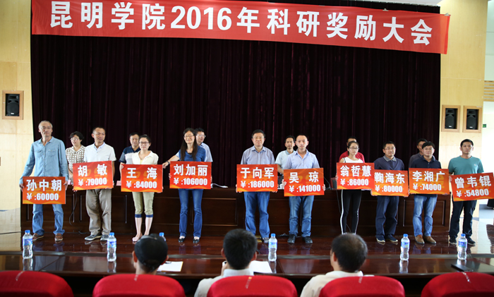 副校长李翔宣读了《永利集团3044官网欢迎您关于对2015年科研成果获奖教师进行奖励的决定》和《永利集团3044官网欢迎您关于对2015年大学生优秀科研项目进行奖励的决定》。对2015年科研工作中取得优异成绩的于向军等202名教师、2名外聘科研人员和王顺有等11名学生进行表彰奖励。