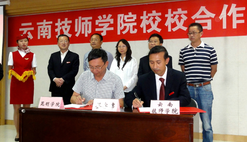 7月8日上午,永利官网副校长马银海应邀出席云南技师学院校校合作座谈会,继续教育学院副院长王亚越等陪同前往。