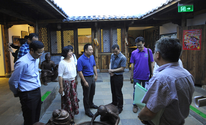 郭华副校长在办公楼校景沙盘前向来宾介绍了学校近几年来学校的建设情况后,陪同来宾参观了学校滇池流域生态文化博物馆。