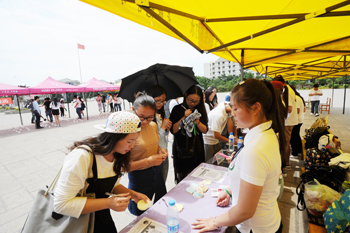 伴随着欢快灵动的音乐,学生们为到场的领导、老师和学生系上了象征健康、活力、希望和生命不息的绿丝带,同时送上美好的祝福。同学们积极地参与到集中宣传的各项活动中。在心理咨询现场,同学们敞开心扉与心理咨询老师诉说自己的烦恼,吐露自己的心声;在做纸玫瑰花现场,同学们纷纷学习制作,发挥自己的动手能力,其乐融融;在房树人测验现场,同学们用彩笔描绘出自己心中的房子、树和人,希望通过绘画测试进一步探索自我和认识自我。场面异常热烈还有通关卡集绿丝带领奖品活动。同学们可以通过找一个人拍一张微笑合影、写一句感恩的话贴在感恩墙上、记忆七色卡片和完成信任游戏获得绿丝带,每完成一项任务获得一条绿丝带,集齐4条绿丝带领取精美奖品。活动中,同学们兴致高昂,体验乐趣,放松身心,活动持续两个多小时。