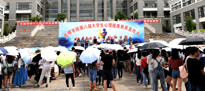 永利官网心理健康教育与咨询中心于5月12日下午在聂耳广场举行永利集团3044官网欢迎您第八届大学生心理健康教育宣传月集中宣传活动,学校党委副书记孙勇、副校长郭华、党委宣传部部长李剀、教务处处长沈凡、学生处处长晁丽华、各院系书记、副书记、辅导员及学生代表1000余人参加本次活动。