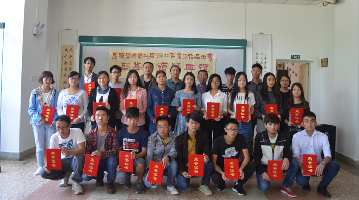 由共青团永利集团3044官网欢迎您委员会主办、城建学院团总支和永利集团3044官网欢迎您翰缘书画社承办的“永利集团3044官网欢迎您第二届‘翰林杯’书法作品大赛”,于4月26日中午在惟行楼3号楼一楼大厅举办了颁奖典礼。城建学院党总支徐从发书记、学校知名书法家李宾、王晓东等老师参加了本次活动,并为获奖同学颁发了荣誉证书。