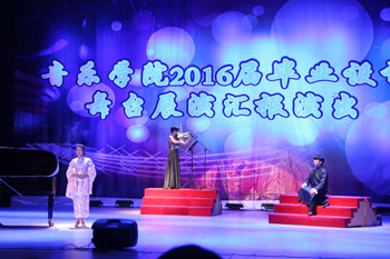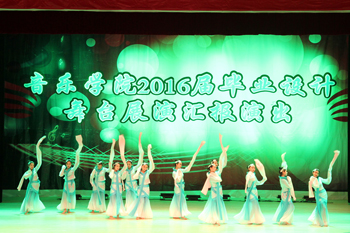 音乐学院鲁林老师的原创合唱作品《新大河涨水沙浪沙》拉开汇报演出帷幕。随后音乐学院的2016届毕业生和教师为观众们献上了精彩的表演,有奔放的佤族群舞,高亢的女声独唱,古典的歌剧选段,国乐经典《梁祝》,柔美的《采薇》群舞,文学性艺术性极佳的《再别康桥》及优雅的四手联弹等。