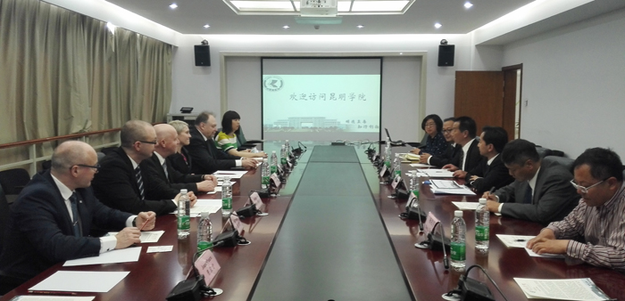 4月8日上午,在昆明市外侨办副主任张晓明等一行的陪同下,芬兰于韦斯屈莱市议会主席保利•帕塔南先生率于韦斯屈莱市董事会主席瑞塔•马克妮女士、于韦斯屈莱市市长蒂姆•科伊维斯托先生、于韦斯屈莱应用科技大学校长尤西•哈尔图宁等一行7人访问永利官网。校长何华、副校长李翔、校长办公室主任杨跃、国际交流合作处处长王文君、医学院副院长杨兆宇、医学院副书记罗隽雁及国际处相关人员热情接待并与之会谈。