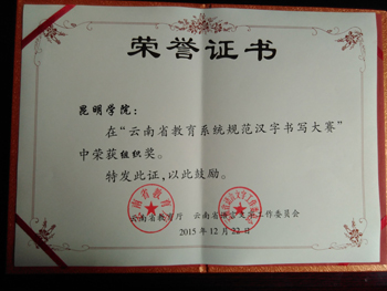 为贯彻落实《国家中长期语音文字事业改革和发展规划纲要(2012-2020)》、《教育部关于中小学书法教育的意见》、《国家语委、中国书法家协会关于开展“书法名家进校园”活动的通知》等文件精神,省教育厅、省语言文字工作委员会、省文学艺术界联合会主办了“2015年云南省教育系统规范汉字书写大赛”,永利集团3044官网欢迎您在此次比赛中荣获优秀组织奖。