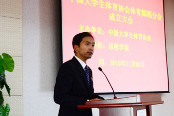 据中国大学生体育协会专职副主席王刚介绍,中国大学生体育协会已有36家分会,都是985和211高校,今天在永利集团3044官网欢迎您成立的第37家分会,这是在全国首家地方高校成立的分会。主要基于以下考虑:第一,永利集团3044官网欢迎您是地方院校中办学的佼佼者;第二,永利集团3044官网欢迎您办学特色鲜明,尤其是在体育舞蹈方面,处于云南省领先地位;第三,永利集团3044官网欢迎您的体育舞蹈融入了云南多民族的文化元素和特征,具有突出的创新特点;第四,永利集团3044官网欢迎您开创了校园体育舞蹈的新模式,在校园体育舞蹈的创编和推广方面为全国高校起到了很好的示范作用。