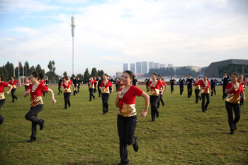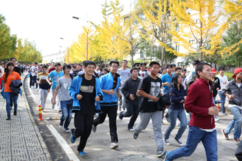 本届冬季运动会在保留、发扬以往教职工环校园跑的项目和传统的同时,参赛人员由全体教职工扩大到全体在校师生。在校领导的领跑下,2万余名师生携手同跑金色的校园银杏大道,不同的年级、不同的班级,挥动着不同的队旗,喊着不同的方号,一边高呼一边向前奔跑,宽敞的银杏大道变成了缤纷动感的人流彩带,气氛活跃,初冬微凉的校园,也因为这群万人的奔跑,再次热烈如火。“万人”环校园跑是往届校运会教职工“环校园跑”项目的升级版,万人奔跑引领全校师生“走出房间,跑在校园”的新风尚,激发起师生参与体育活动的热情,真正实现了“我的校运 我参与”,全民健身、共享健康的目的。