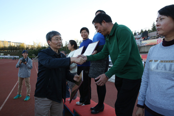 参加闭幕式的校领导分别为学生组、教工组获奖者颁奖,并合影留念。