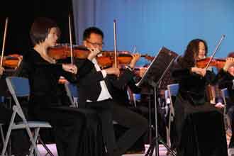 昆明聂耳交响乐团的艺术家们为永利官网师生演奏了关峡的《节日序曲》、那少承的《滇池圆舞曲》、鲍元恺的《紫竹调》《猜调》、杜鸣心的芭蕾舞剧《红色娘子军》组曲之《军歌》《操练》《快乐的女战上》《万泉河水》、丁晓里的《中国心》、柴可夫斯基的芭蕾舞剧《天鹅湖》组曲之《场景》《四小天鹅》《拿波里舞曲》、奥芬•巴赫的《康康舞曲》、约翰•施特劳斯的《拨弦波尔卡》《铁匠波尔卡》《拉德斯基进行曲》。