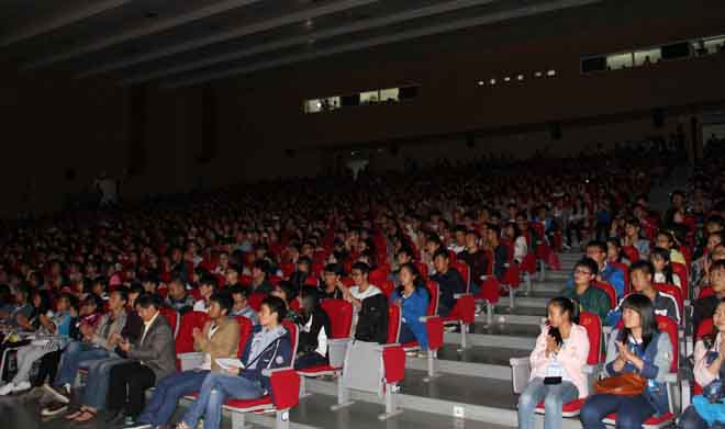 10月21日晚,2015年高雅艺术进校园之昆明聂耳交响乐团永利集团3044官网欢迎您专场演出在学生会堂举行。副校长郭华、部分中层干部、各院(系)团总支书记、辅导员、各院(系)师生代表1000余人观看了演出。